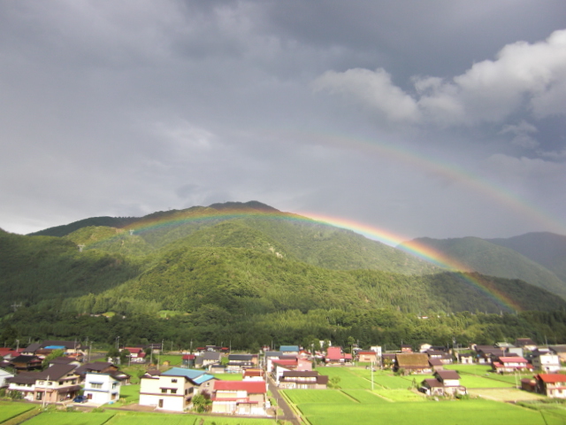 色鮮やかな虹、二重にかかった虹、初めての体験に思わず車を