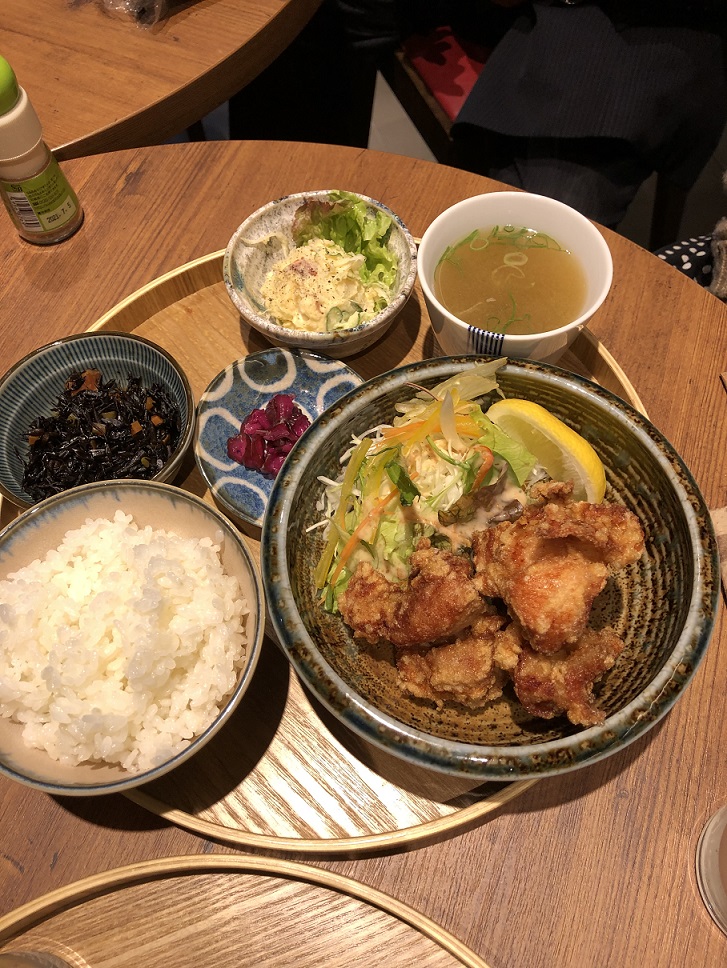 からあげ定食に煮魚定食、鴨なんば定食をオーダー。