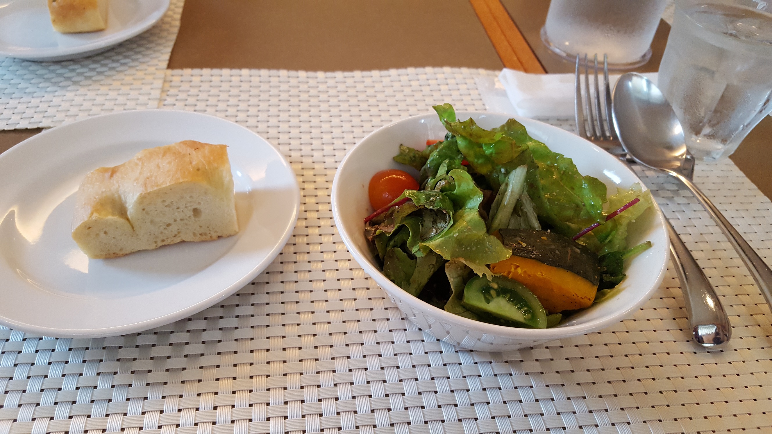 前菜サラダ、パン、パスタorニョッキ、コーヒー。