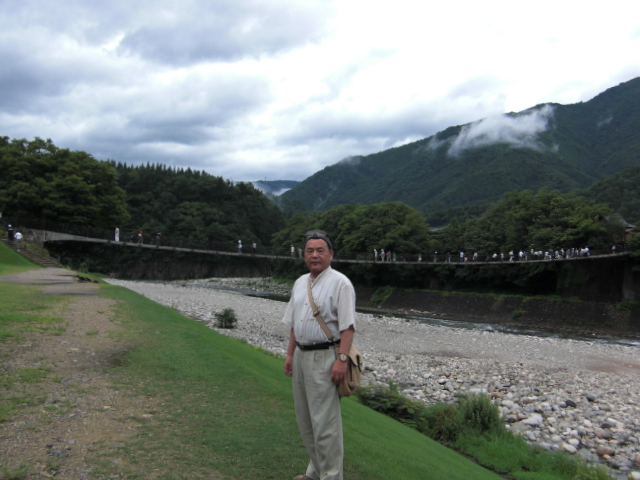 集落を結ぶコンクリート造りの吊り橋。世界文化遺産・白川郷